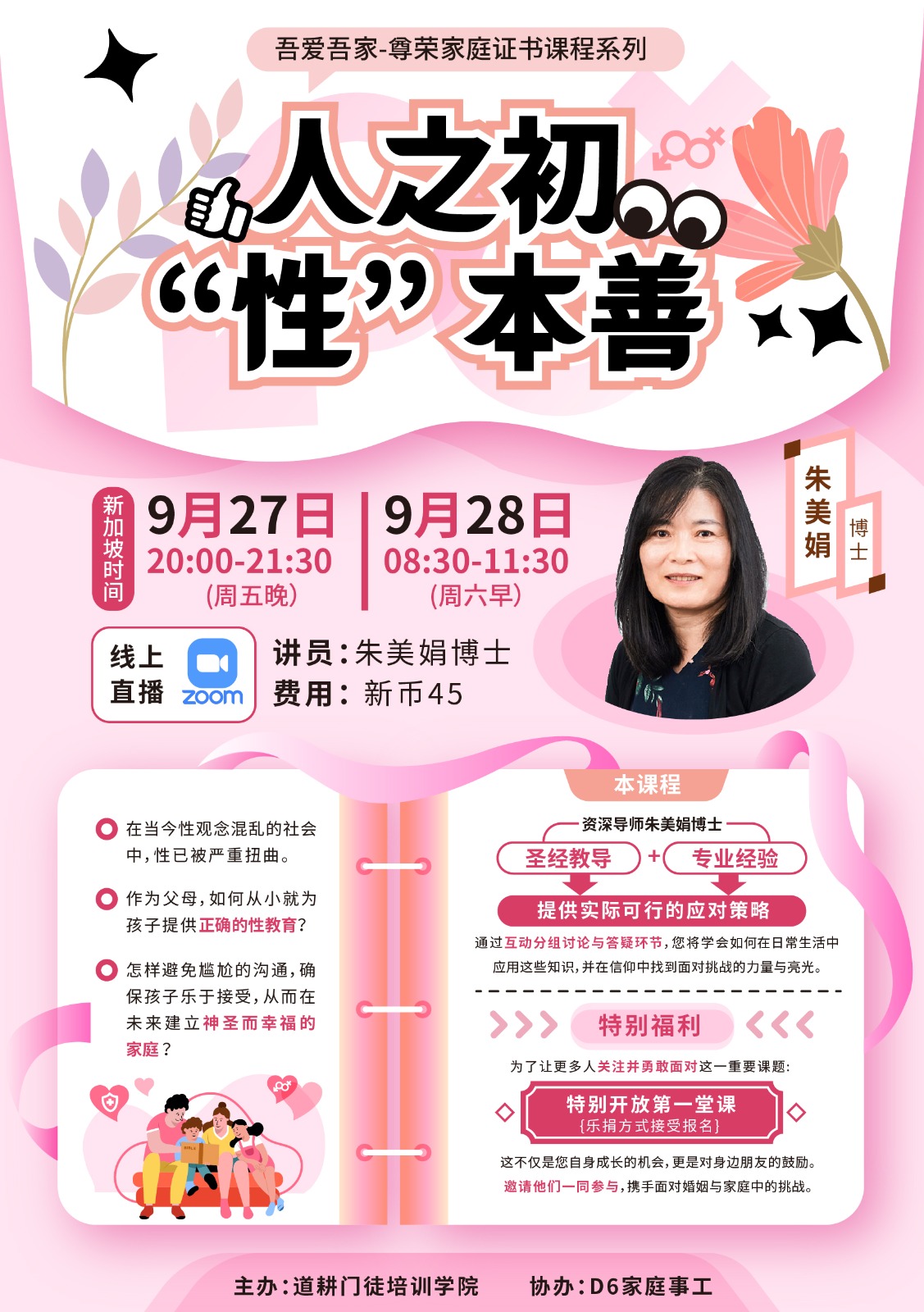 本课程由资深导师朱美娟博士执教 圣经教导+专业经验 —>提供实际可行的应对策略。通过互动分组讨论与答疑环节,您将学会如何在日常生活中应用这些知识,并在信仰中找到面对挑战的力量与亮光。