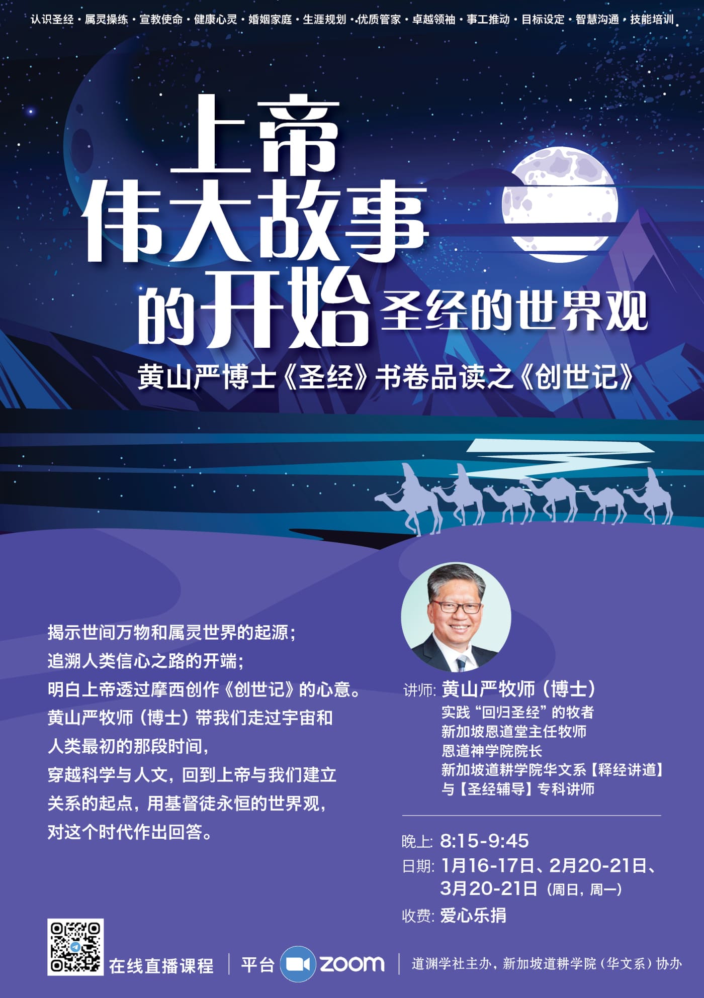 黄山严牧师(博士)带我们走过宇宙和人类最初的那段时间,穿越科学与人文,回到上帝与我们建立关系的起点, 用基督徒永恒的世界观,对这个时代作出回答。