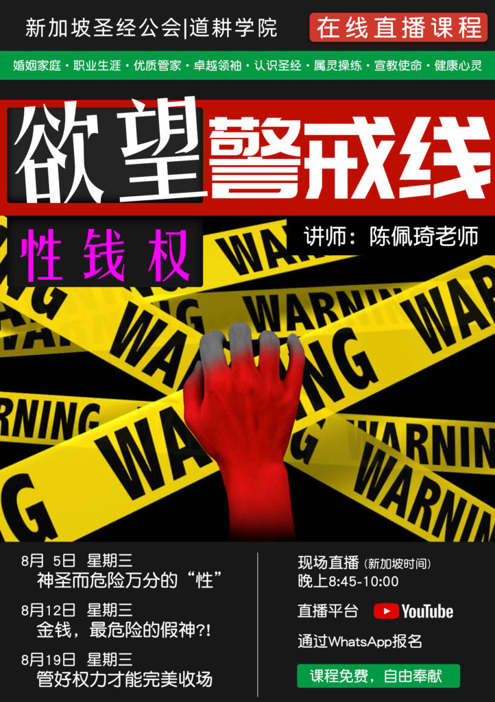 今天,对性、金钱和权力的追逐成为很多人生命中最重要的事,(是很多人的偶像),甚至许多弟兄姊妹也深受这种风气的影响。根据圣经,性、金钱、权力本质上都是好的。然而,一旦它们控制了我们的人生,我们必将失去许多喜乐和祝福,甚至走向毁灭。 我们该如何避免被性、金钱和权力所奴役?我们该如何靠真理得自由?本课程将带您一起深入探讨。
